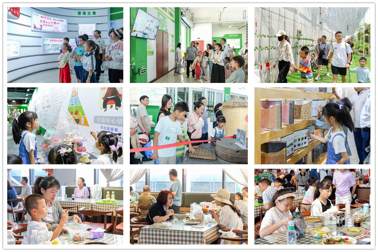 活动包括亲子手作、厂馆参观和味蕾体验三项内容。在亲子手作环节,面点师讲解花馍与绿豆糕的历史及制作要点,孩子们在家长们的协助下,或是用双手捏出花朵、小动物等造型,用彩色面团为花馍“点睛”,或是专注地将豆沙填入模具压实塑性。一块块造型别致的花馍、一份份香甜的绿豆糕,不仅展现了孩子们的创新意识和动手能力,更让亲子协作的温情在面粉与馅料的交融中发酵流淌。随后,大家走进爱菊智能工厂,透过全景参观通道,共同见证米、面、油、主食等产品的智能化生产过程。在爱粮节粮科普馆,生动的图文展板、逼真的粮食作物模型与互动式多媒体装置交相辉映,讲解员以通俗易懂的语言讲述了粮食从远古农耕时代到现代餐桌的演变历程,展示了小麦、水稻等主要作物的生长周期与分类知识。孩子们通过短片直观了解到全球粮食短缺的现状,纷纷举手承诺“光盘行动”。家长们则与孩子分享自己儿时关于粮票、磨面等记忆,让节约意识在代际交流中悄然传递。在味蕾体验环节,现场化身为多元饮食文化的“微缩展台”。