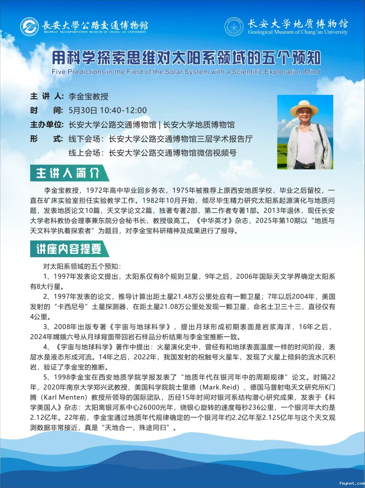 讲座预告:用科学探索思维对太阳系领域的五个预知