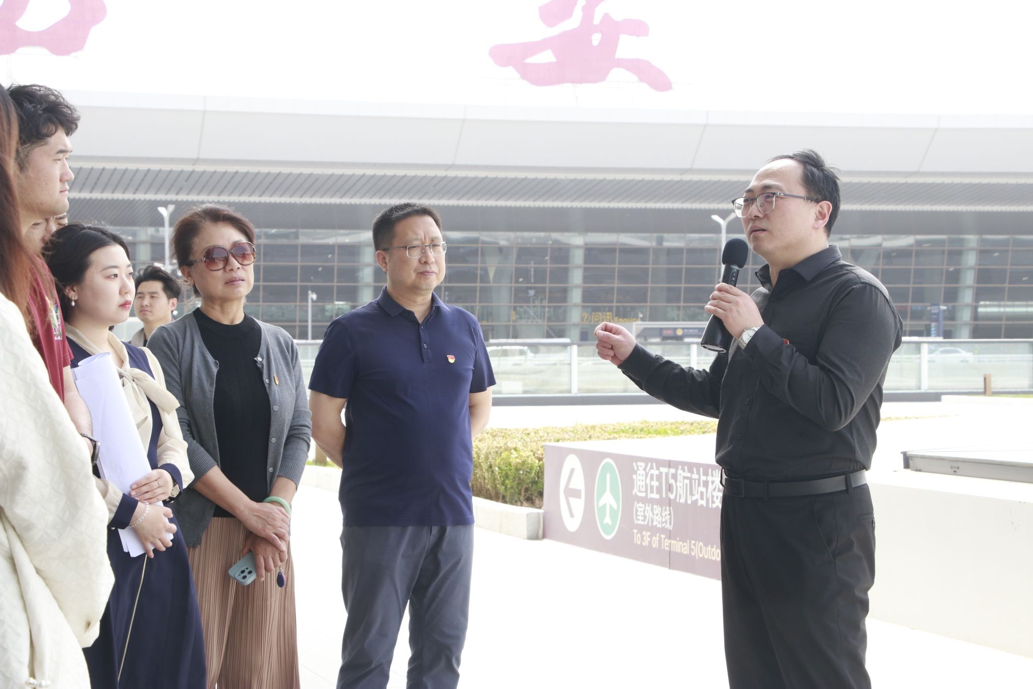 随后,师生一行参观了T5航站楼,实地了解其总体建设和运行情况,并走进机场博物馆开展文化研学。