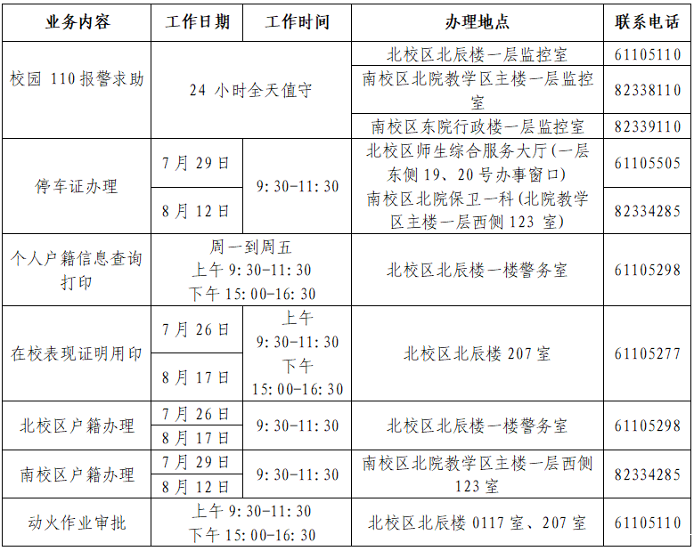 根据学校《关于2024-2025学年暑期工作安排的通知》,现将保卫处暑期业务开展相关事宜通知如下: