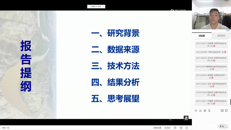 从研究背景、数据来源、技术方法、结果分析与思考展望五个方面,许强同学给大家介绍了InSAR技术的原理及其在北京地面沉降监测中的应用案例。