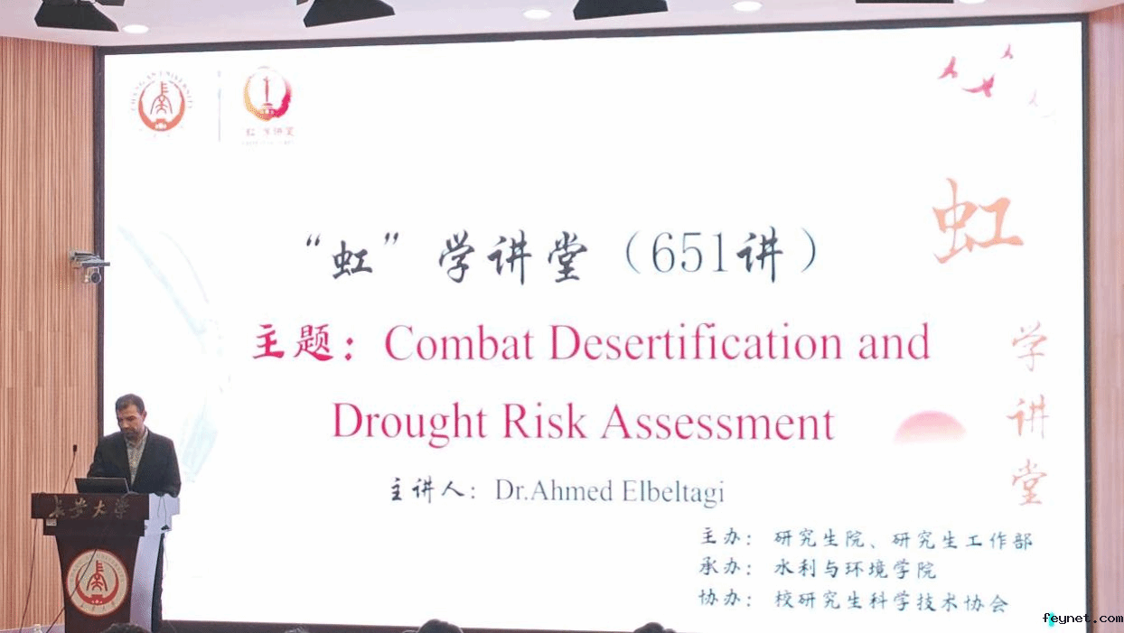 9月17日下午,由研究生院、研究生工作部主办,水利与环境学院承办,校研究生科学技术协会协办的“虹”学讲堂第651讲在南校区东院伯声报告厅举办。河海大学Ahmed Elbeltagi研究员作题为“Combat Desertification and Drought Risk Assessment”的报告,相关学院共150余名师生参加讲座。