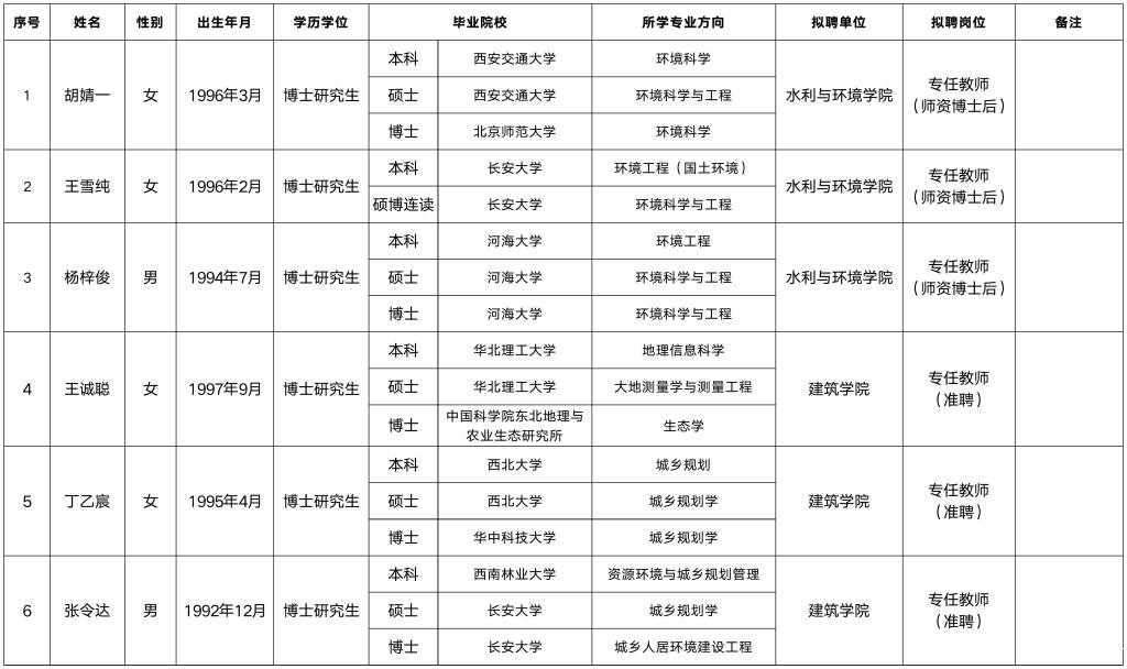 经考察通过,现对我校2025年第八批拟聘专任教师名单公示如下: