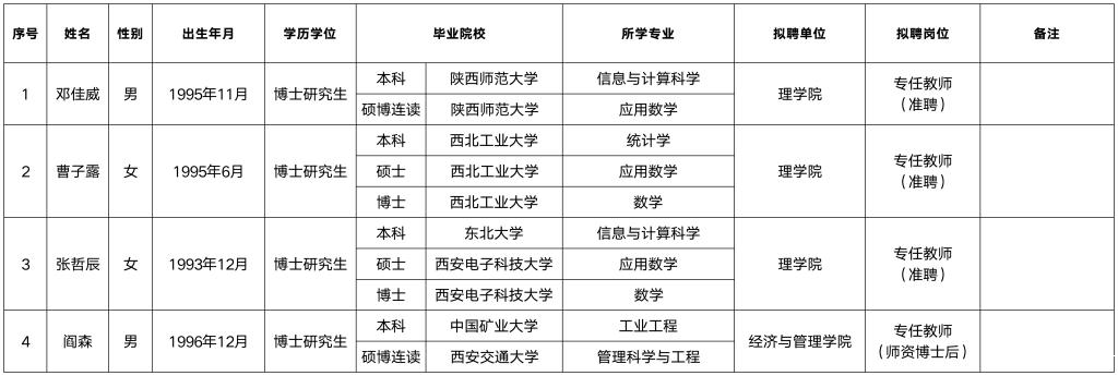 经考察通过,现对我校2025年第十六批拟聘专任教师名单公示如下: