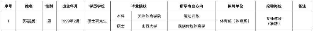 经考察通过,现对我校2025年第十八批拟聘专任教师名单公示如下: